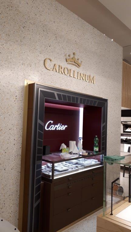 Úpravy interiéru butiku Carollinum, Pařížská 11, Praha 1, náklady 6,064 mil. Kč, realizace 08/2018 - 03/2019